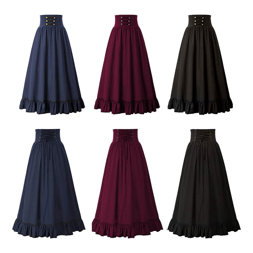 تكوين القماش الرئيسي: البوليستر (البوليستر) اللون: تنورة مطوية عالية الخصر باللون الأزرق، تنورة مطوية عالية الخصر باللون الأسود، تنورة مطوية عالية الخصر باللون الأحمر الخمري المقاس: XS، S، M، L، XL، XXL، XXXL عنصر الموضوع: الخيال الأوروبي والأمريكي
